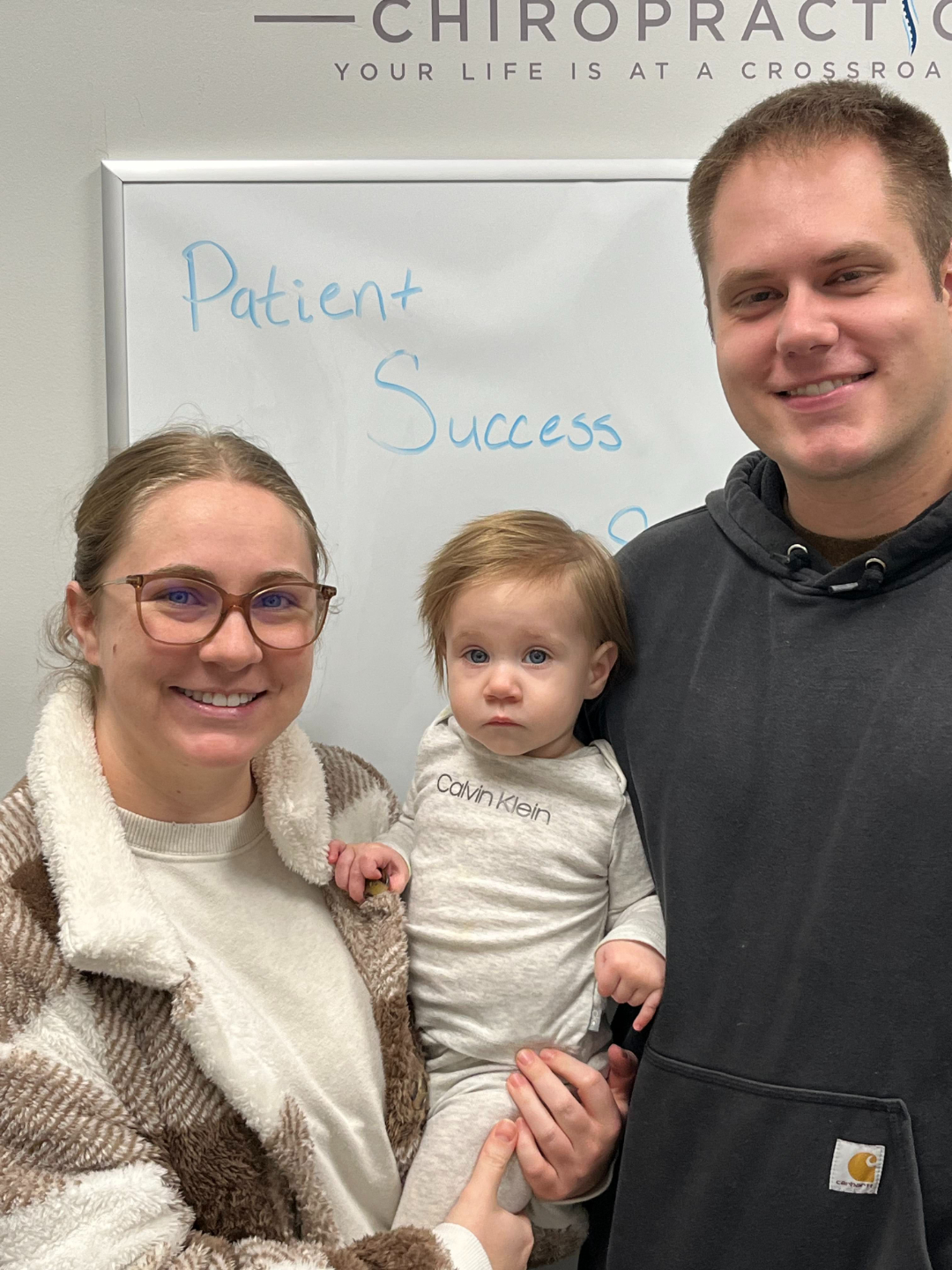 Up until this point we were having feeding struggles. Reagan wasn’t interested in eating, drinking, or nursing. She was always very tense and tight to the point that she would arch her back a lot. We found out that all the stress I was under during pregnancy with her played a part in what we were experiencing now. Because we were running from feeding therapy, to Occupational Therapy, IBCLC, and being hospitalized for low weight. All of this left my husband and I feeling exhausted, defeated, lonely, and scared. We were trying everything and nothing was working. When we sat down for her initial consult, we were running out of options. We came in hoping that Crossroads Chiropractic could help our baby girl. When Dr. Stephen took the time to explain to us how it all works and we saw Reagan’s scans for the first time, it all made sense. I felt that her scans were very accurate with what I imagined her struggles may be stemming from. We noticed that chiropractic was working for us when after the first visit we went home and Reagan nursed the best she ever has. We are still making progress but still have our ups and downs, but with consistent chiropractic adjustments we have noticed she seems more comfortable in her own body and more accepting of foods and drinking with increased skill while nursing.